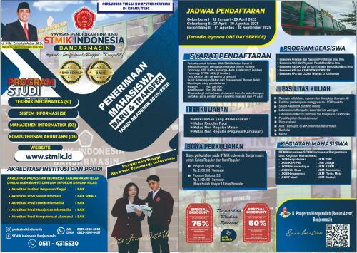 Brosur & Formulir Penerimaan Mahasiswa Baru STMIK Indonesia Banjarmasin 2017-2018Berikut Brosur & Persyaratan Pendaftaran Mahasiswa Baru STMIK