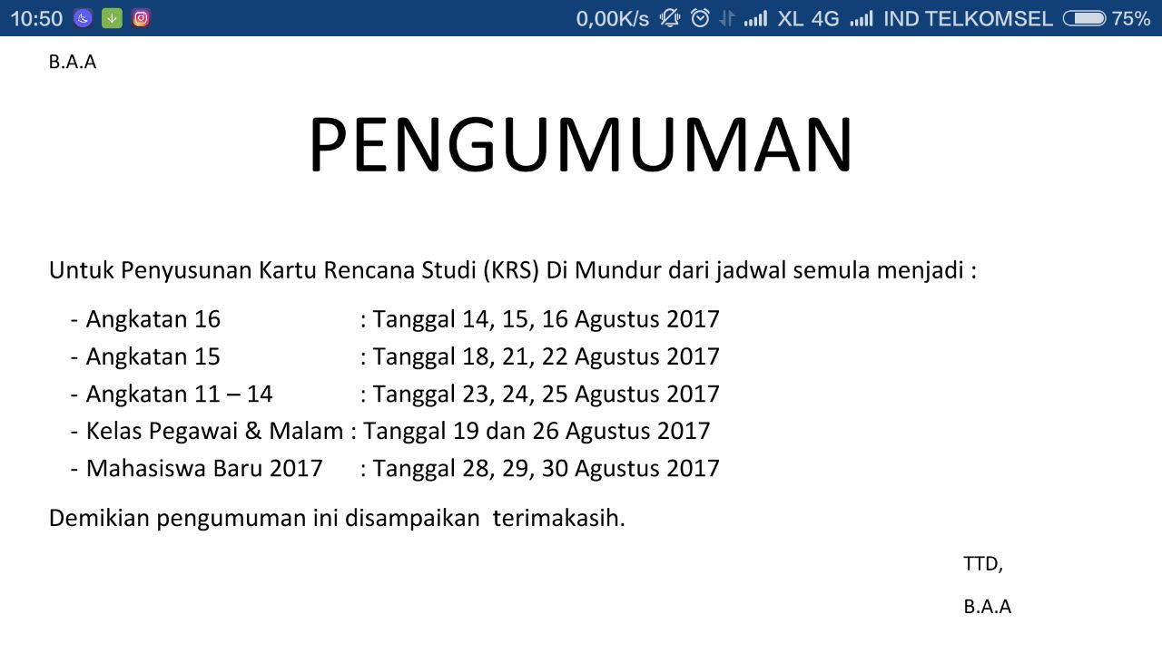 Kategori : Pengumuman, oleh : M. Najamudin Ridha Rabu, 09 Agustus 2017 15:32:51 dibaca : 22771 kali