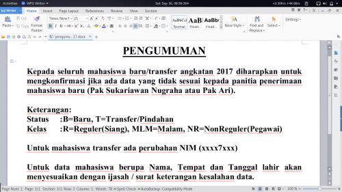 Kategori : Pengumuman, oleh : M. Najamudin Ridha Sabtu, 30 September 2017 08:52:28 dibaca : 21814 kali